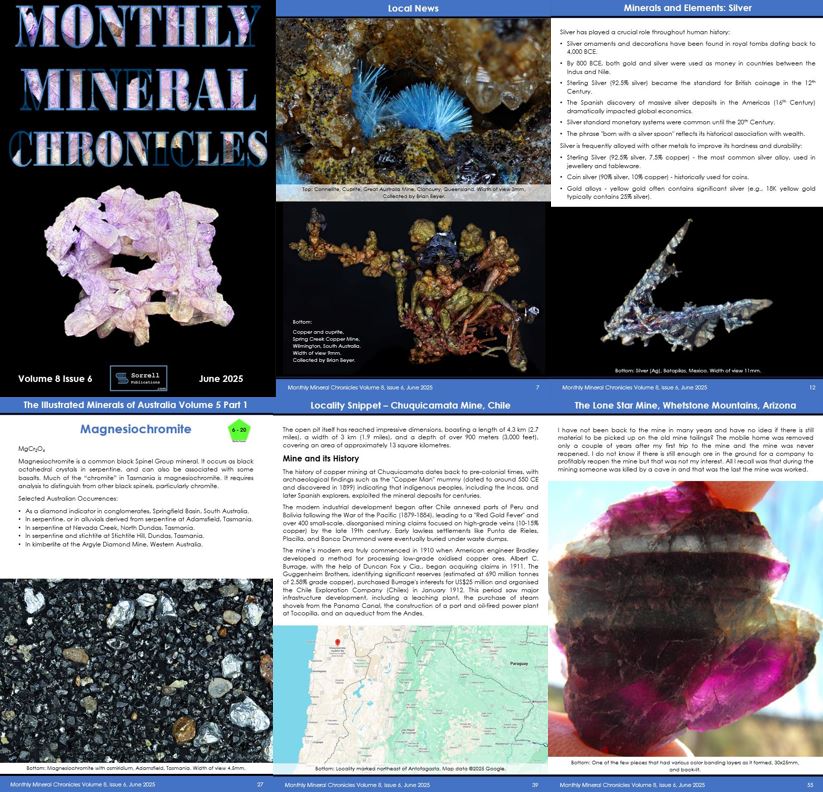 Welcome to volume 8 issue 6 of Monthly Mineral Chronicles. This is a publication pulled together by a mineral collector for mineral collectors.